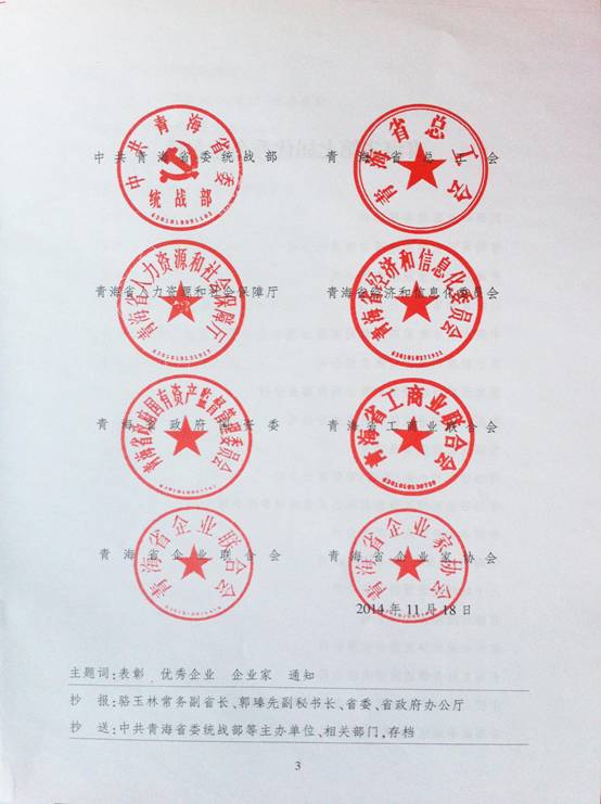 由省委統(tǒng)戰(zhàn)部、省總工會(huì)等8家單位聯(lián)合組織開展的"青海省優(yōu)秀企業(yè)、企業(yè)家"評(píng)選表彰活動(dòng),經(jīng)過多重、嚴(yán)格評(píng)審,青海省物產(chǎn)集團(tuán)總公司榮獲"青海省第七屆優(yōu)秀企業(yè)"稱號(hào)。集團(tuán)及所屬各公司將繼續(xù)發(fā)揚(yáng)成績(jī)、再接再厲,進(jìn)一步發(fā)揚(yáng)改革創(chuàng)新精神,不斷開拓市場(chǎng),攻堅(jiān)克難、腳踏實(shí)地、真抓實(shí)干,為實(shí)現(xiàn)物產(chǎn)集團(tuán)科學(xué)穩(wěn)健發(fā)展做出新貢獻(xiàn)。