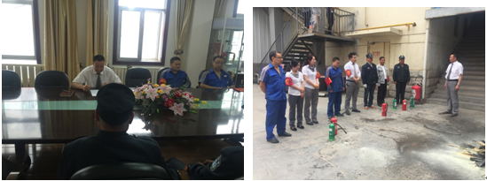 10:30時安全員和義務(wù)消防隊(duì)員們開始進(jìn)行現(xiàn)場滅火演練,通過演習(xí),大家掌握了滅火器和消防栓的使用方法。