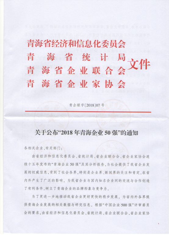 青海省物產(chǎn)集團(tuán)有限公司連年入選青海企業(yè)50強(qiáng)