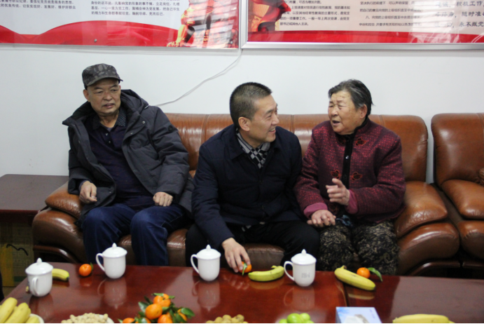 在退休老黨員家中,集團(tuán)黨委副書(shū)記、總經(jīng)理劉玲與老人們促膝交談,噓寒問(wèn)暖,關(guān)切地詢問(wèn)他們的健康狀況、居住環(huán)境及家庭情況,向他們轉(zhuǎn)達(dá)了集團(tuán)黨委的新春?jiǎn)柡蚝兔篮米8?,希望老人們?cè)诎捕韧砟甑耐瑫r(shí),繼續(xù)關(guān)心、支持物產(chǎn)集團(tuán)的改革與發(fā)展。