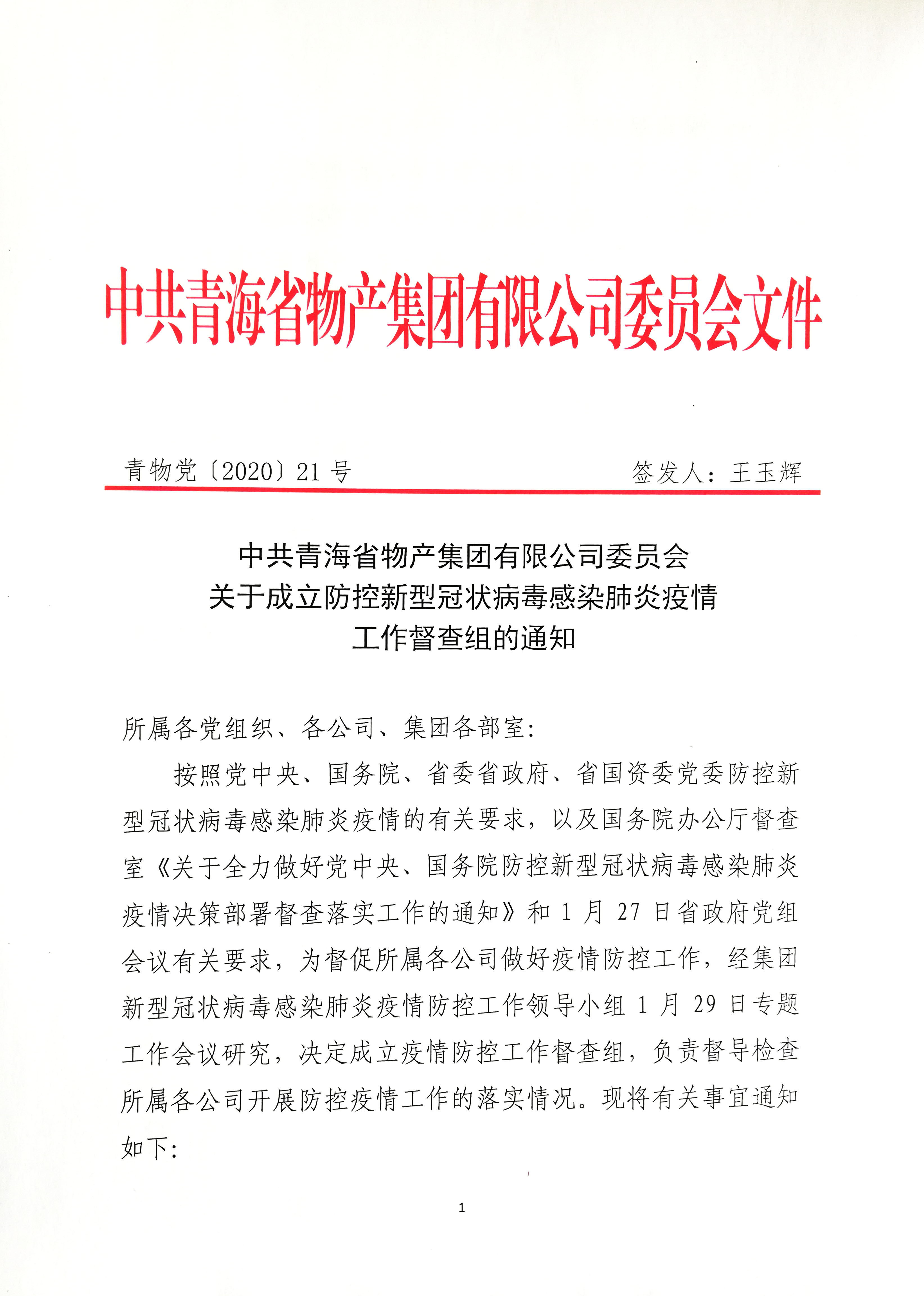 關(guān)于成立防控新型冠狀病毒感染肺炎疫情工作督查組的通知
