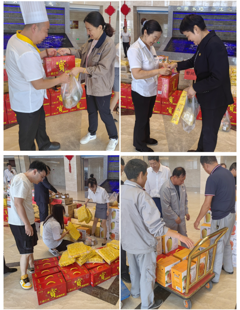 活動中,公司領(lǐng)導(dǎo)班子成員將裝有涼茶、飲品、綠豆等防暑降溫物資的“清涼禮包”,送到一線職工手中,叮囑大家在工作中強化安全意識,合理安排作息時間,做好防暑降溫措施,增強自我保護(hù)意識,確保高溫期間安全工作。