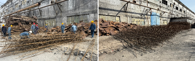 活動中,大家通過分工協(xié)同,密切配合,一部分黨員進行拆卸分裝,一部分黨員撿拾散落鐵皮,一部分黨員轉(zhuǎn)運碼放,將擋雨板和鋼筋進行分離,同時將鋼筋整齊碼放。經(jīng)過一下午的辛勤勞動,老系列廠區(qū)一側(cè)拆解下來的擋雨板及鋼筋被分離,本次活動不僅對廢舊材料應(yīng)收盡收,更將可重復(fù)利用材料進行二次分揀,真正實現(xiàn)物盡其用。
