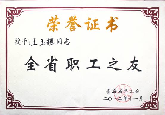 在2012年11月23日召開(kāi)的青海省工會(huì)第13次代表大會(huì)上,省總工會(huì)對(duì)全省優(yōu)秀個(gè)人、模范集體進(jìn)行了表彰。集團(tuán)總經(jīng)理王玉輝同志榮獲"全省職工之友"榮譽(yù)稱(chēng)號(hào);青海物產(chǎn)物資配送有限責(zé)任公司工會(huì)榮獲"全省模范職工之家"榮譽(yù)稱(chēng)號(hào);馬軍同志榮獲"全省優(yōu)秀工會(huì)積極分子"榮譽(yù)稱(chēng)號(hào);丁勇同志榮獲"全省優(yōu)秀工會(huì)工作者"榮譽(yù)稱(chēng)號(hào)。